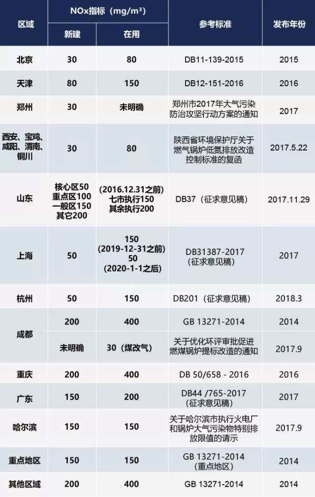 作為PM2.5的重要前體物,氮氧化物成為大氣污染治理的重中之重,為了進(jìn)一步減少氮氧化物排放,改善空氣質(zhì)量,全國各地區(qū)在滿足國家標(biāo)準(zhǔn)的同時(shí),還陸續(xù)出臺更為嚴(yán)格的地方標(biāo)準(zhǔn)。